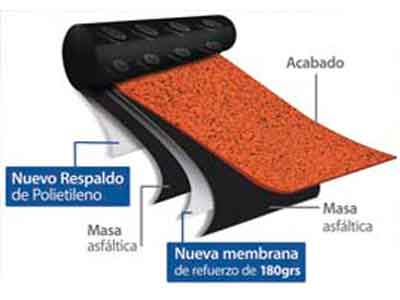 cartón antorchable ahulado con soplete, cartón arenado, membrana reforzada, impermeabilizante ecológico con caucho de